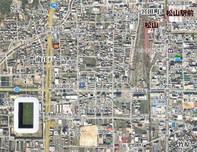 もしも私が南予や東予から観戦に来るサポならば、繁華街付近に格安のホテルを取り、そこから路面電車で向かいます。