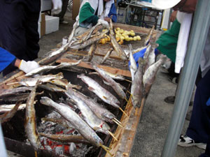 また一昨日の久万高原町はなかなか気合が入ってまして、かなり大きいあまごの塩焼きやじゃがいもの田楽を炭火で焼いたり、よもぎまんじゅうを蒸してました。