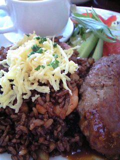 デミグラスソースで炒めたようなハヤシライスのような味で、B級ですがなかなか旨味です。