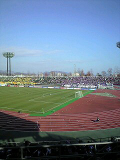 施設的には屋根もほとんどなく、ニンスタよりちょっと新しい程度なのですが、ここのバックスタンドは高さがあってなかなか観やすく、またホームサポと横並びなのでホームの「声」っていうのはあまり気になりません。