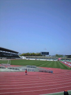 スタジアムですが、結構きれいな陸上競技場で立派な電光掲示板もあります。